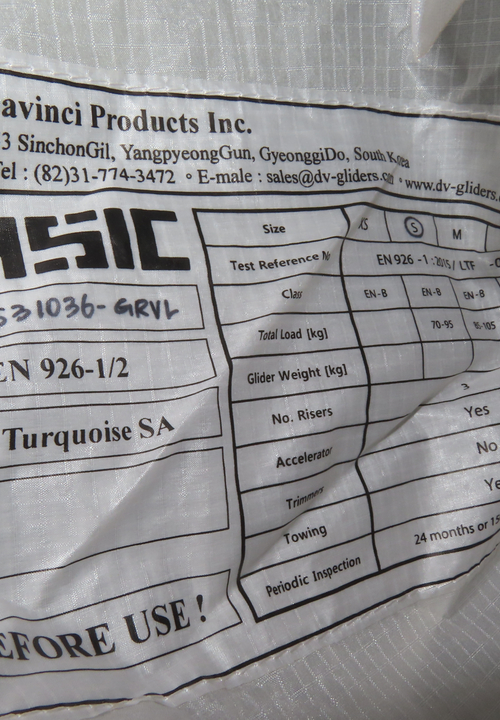 Сертификат параплана Davinci CLASSIC S