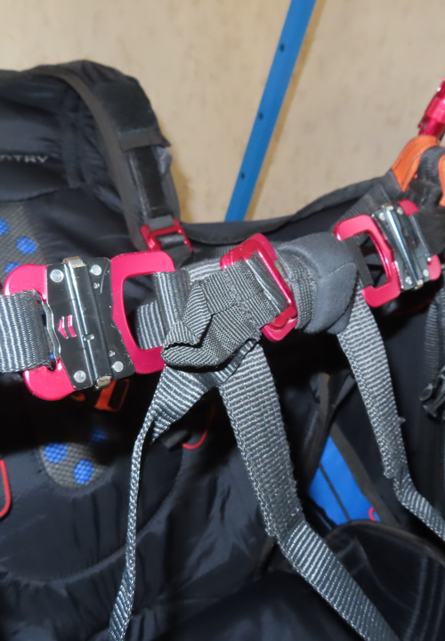 Возможны три варианта расположения контейнера запасного парашюта — фронтальный, встроенный под сидением пилота и их комбинация. Sector имеет большой багажный отсек, в котором можно разместить рюкзак, питьевую систему и прочие вещи, ненужные в полете. Кроме этого, подвеска имеет два боковых кармана доступные в воздухе, а под кокпитом (в варианте «запаска снизу») есть «перчаточное отделение». На кокпите достаточно места для размещения двух — трех приборов. Подвеска укомплектована мягким ременным акселератором. Проводка акселератора выполнена через подшипниковые ролики большого диаметра, что делает работу акселератором удобной и хорошо контролируемой.